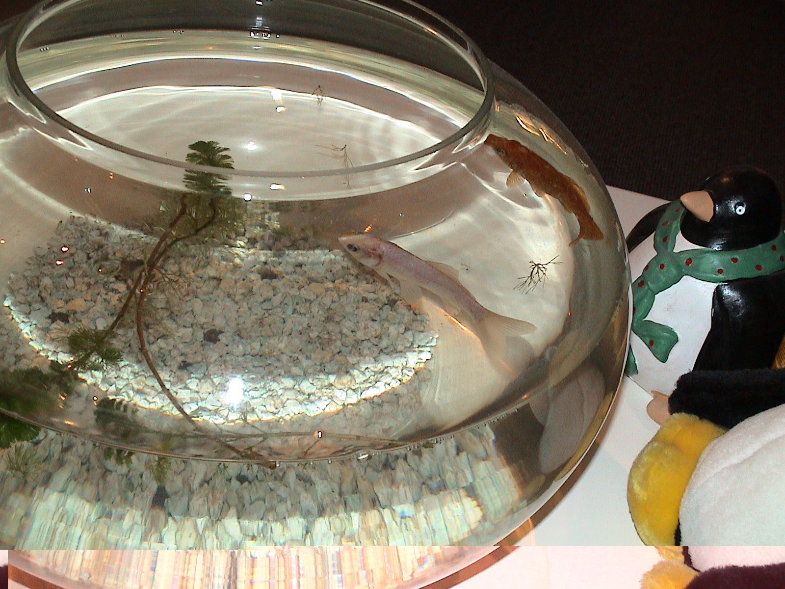 Gupje in een riante villa: een nog veel grotere glazen ronde kom (waarvan